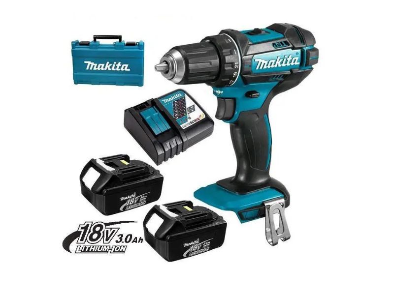 - Máy khoan bắt vít dùng Pin Makita DHP482RAE dùng 2 Pin Li-ion 18V Pin Sạc Nhanh, Phóng điện khỏe thời gian sử dụng lâu.
